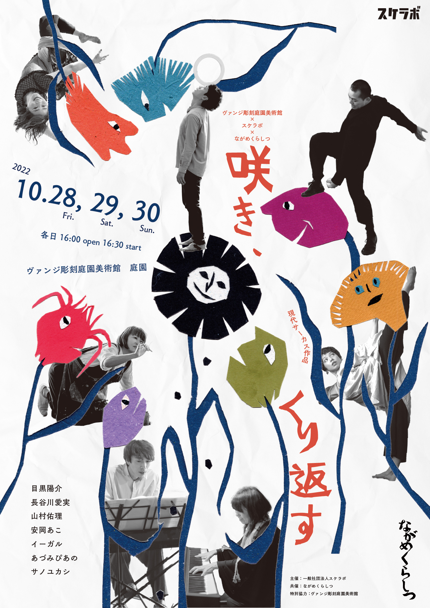 ・雨天でも開催します。雨具をお持ちください。荒天や災害、出演者の体調不良等やむを得ない事情で公演を中止する場合は、当日の10時までにスケラボ公式サイト、SNSでチケットの払い戻し方法含め告知します。